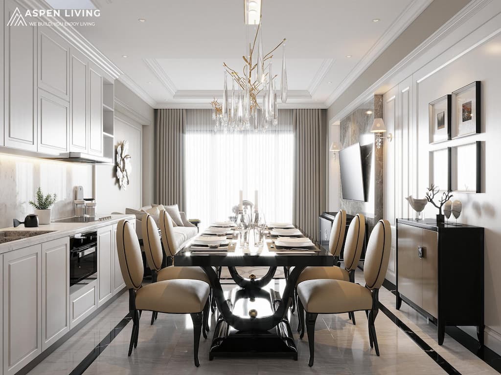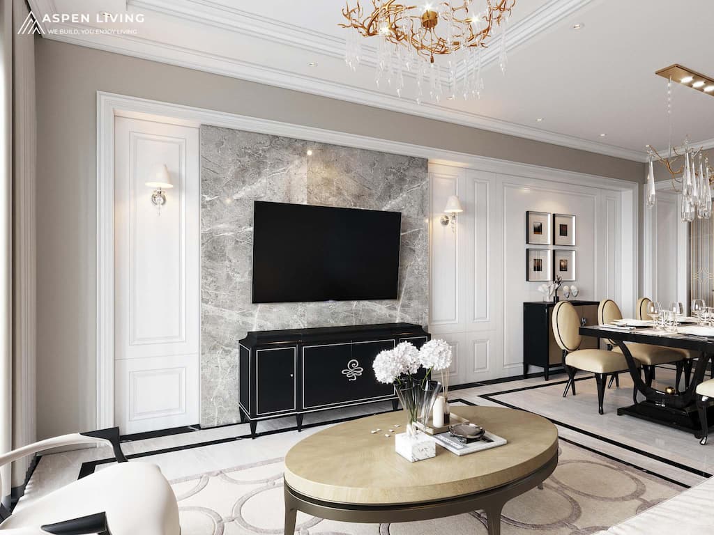 Căn hộ được thiết kế theo phong cách Tân cổ điển hiện đại (Neo-Classic) kết hợp với yếu tố Luxury.